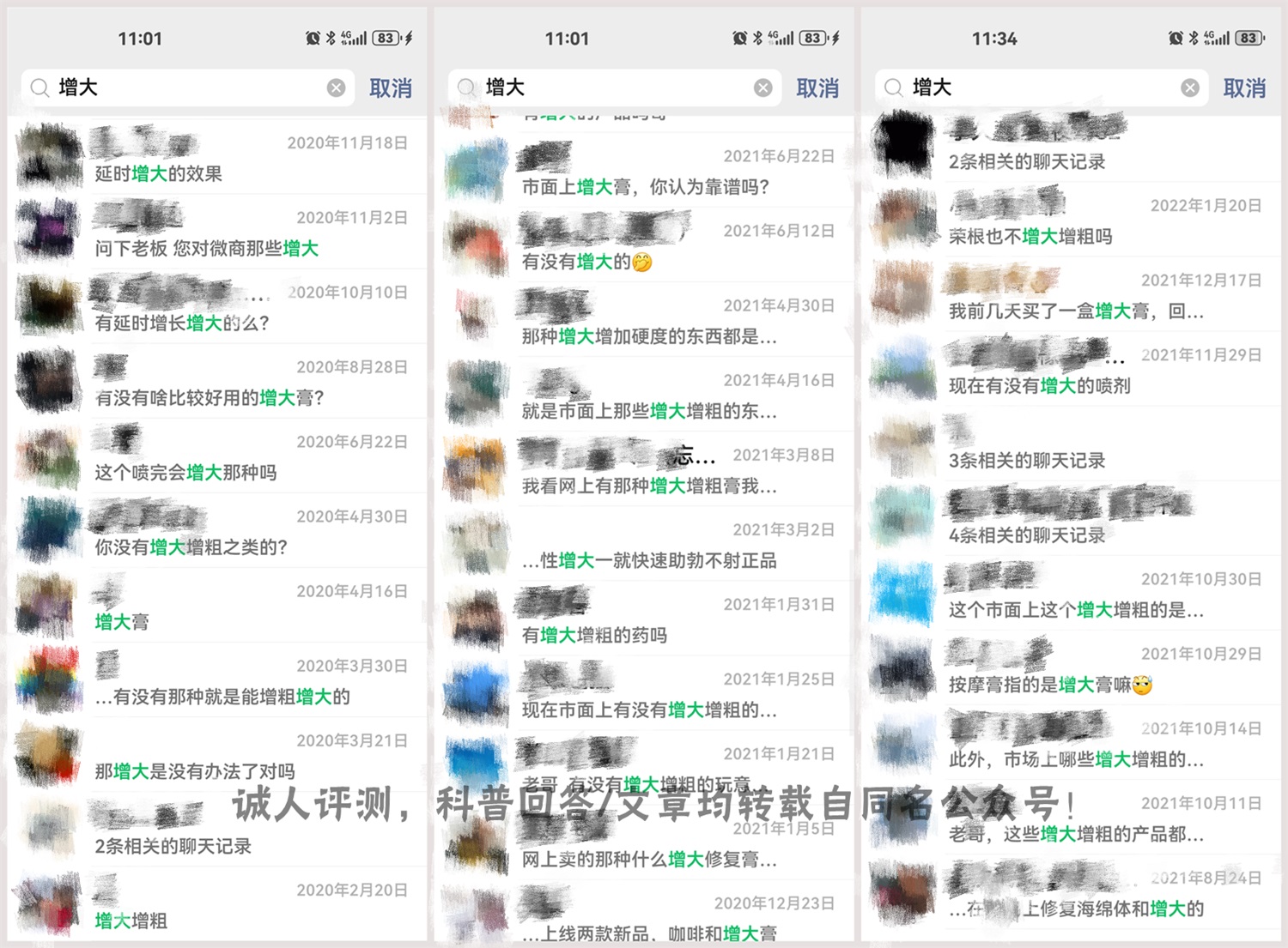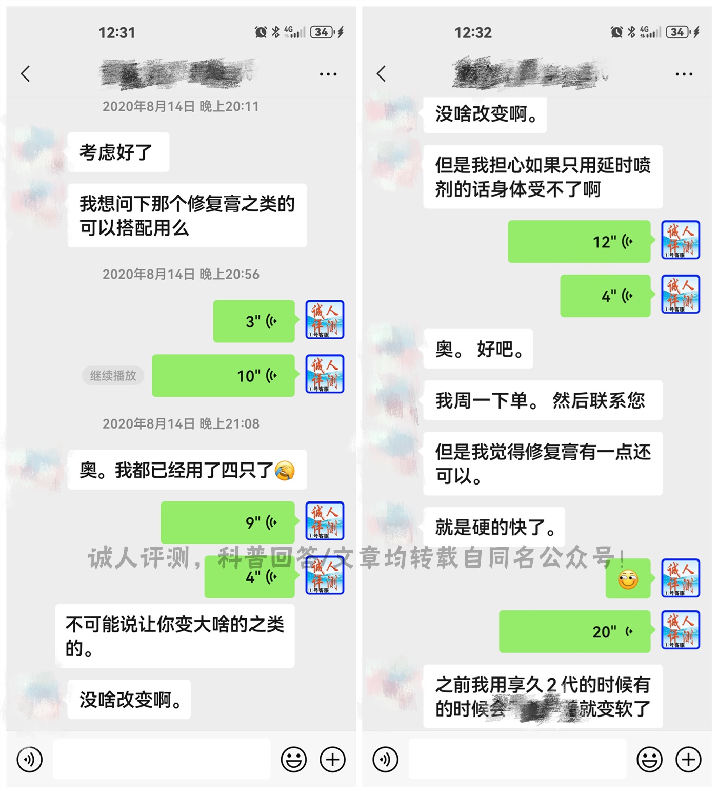 我从18年开始做成人用品,这些年我三个微信、一个淘宝、真实沟通过的客户近万人。但在和这么多客户的沟通交流中,从未有一个客户反馈有使用增大、增粗乳膏产品是真实有效的!